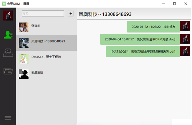 DRM系統(tǒng)簡(jiǎn)單安全易用,安裝好DRM系統(tǒng)之后,通過(guò)微信掃描二維碼登錄DRM系統(tǒng),進(jìn)入系統(tǒng)之后,添加需要接收文檔的同志為好友,添加好了之后,關(guān)閉;