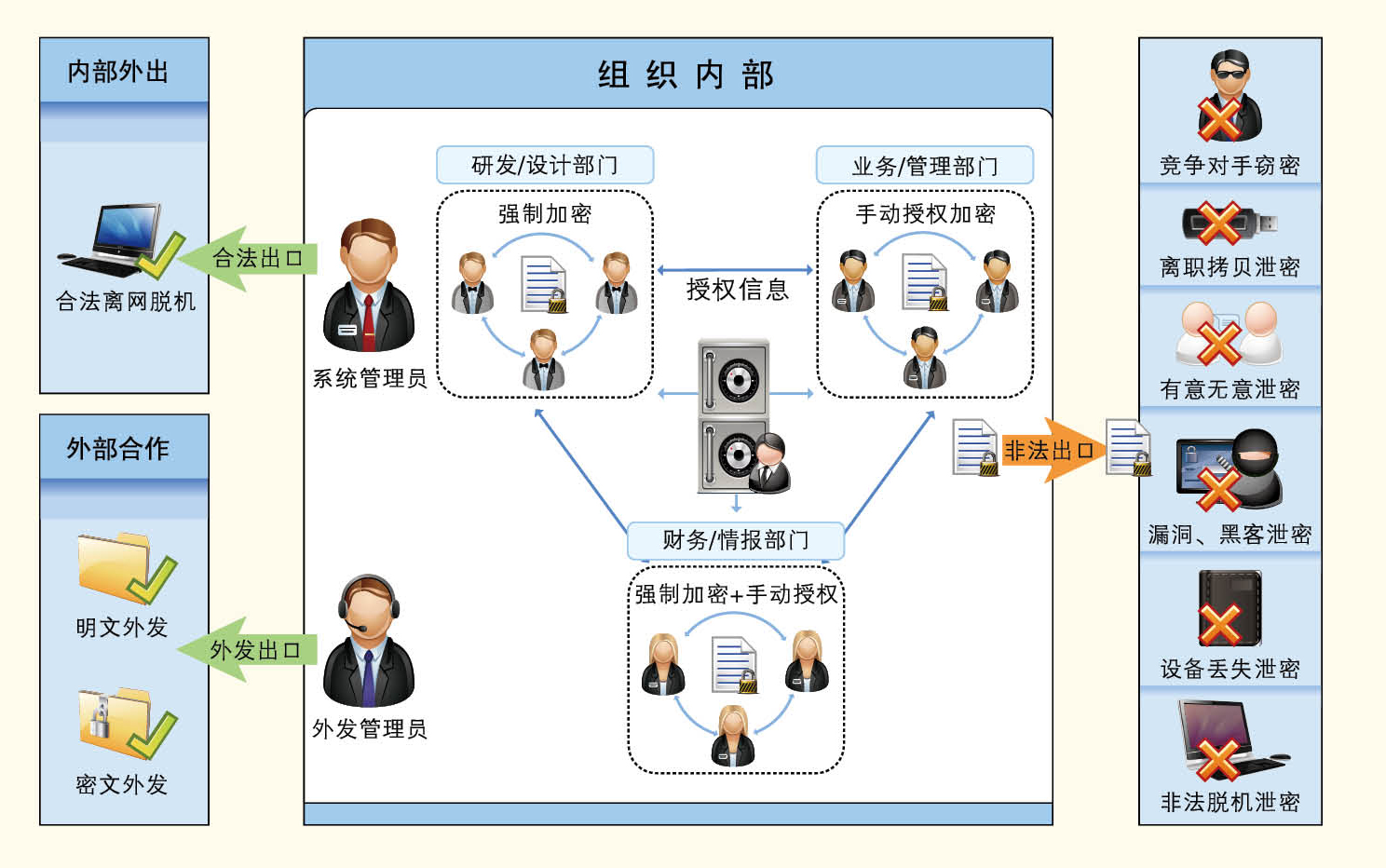 金甲企業(yè)數據加密軟件極為顯著的特性在于嚴密。數據安全系統(tǒng),是典型的“木桶”模型,只要有一塊木板的高度達不到要求,整個木桶就形同虛設。金甲運行于Windows系統(tǒng)驅動底層,多維控制,層層防護,在技術上真正做到了“自始至終,無懈可擊”。